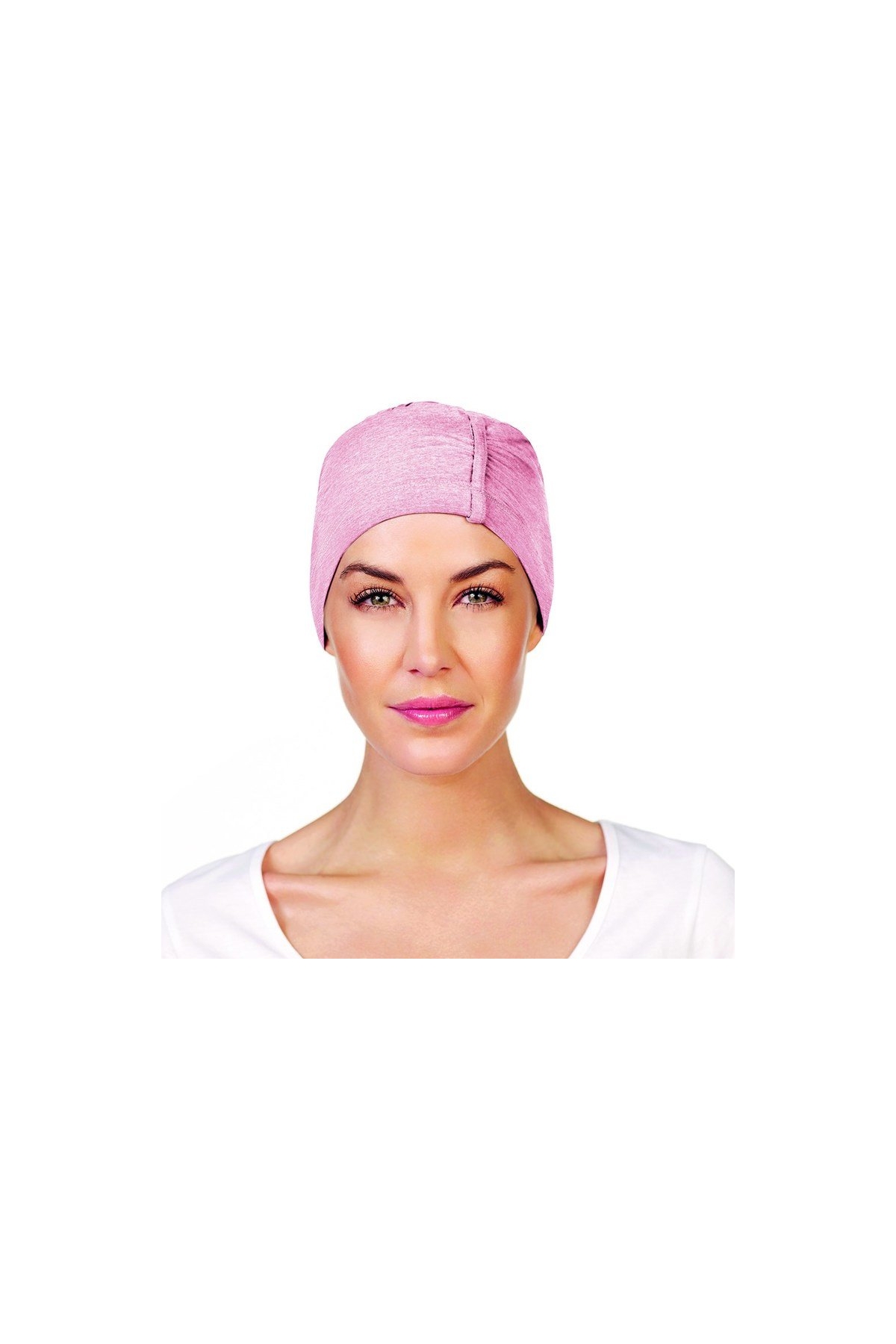Melírovaná čepice na spaní v růžové barvě . Materiál: 95% Bamboo viscose, 5% Spandex