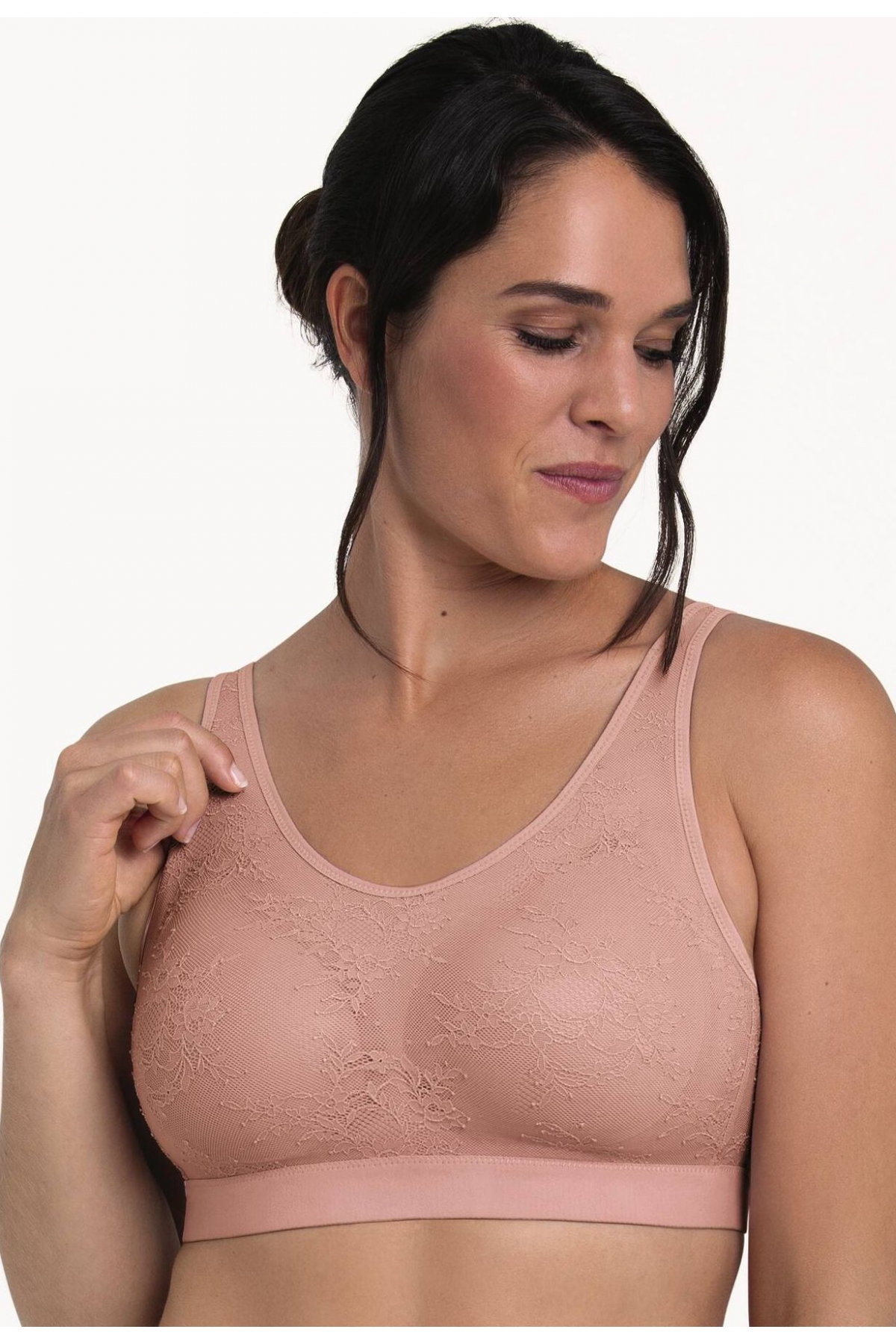 Elegantní podprsenka firmy Anita Fleur má dvojdílný střih košíčku, které jsou podložené hebkým , ale pevným charmeuse-materiálem. Kapsičky z bavlny a zvláště elastický flaušouvý lem v dekoltu. Zadní díl je z pevného Power-tylu.