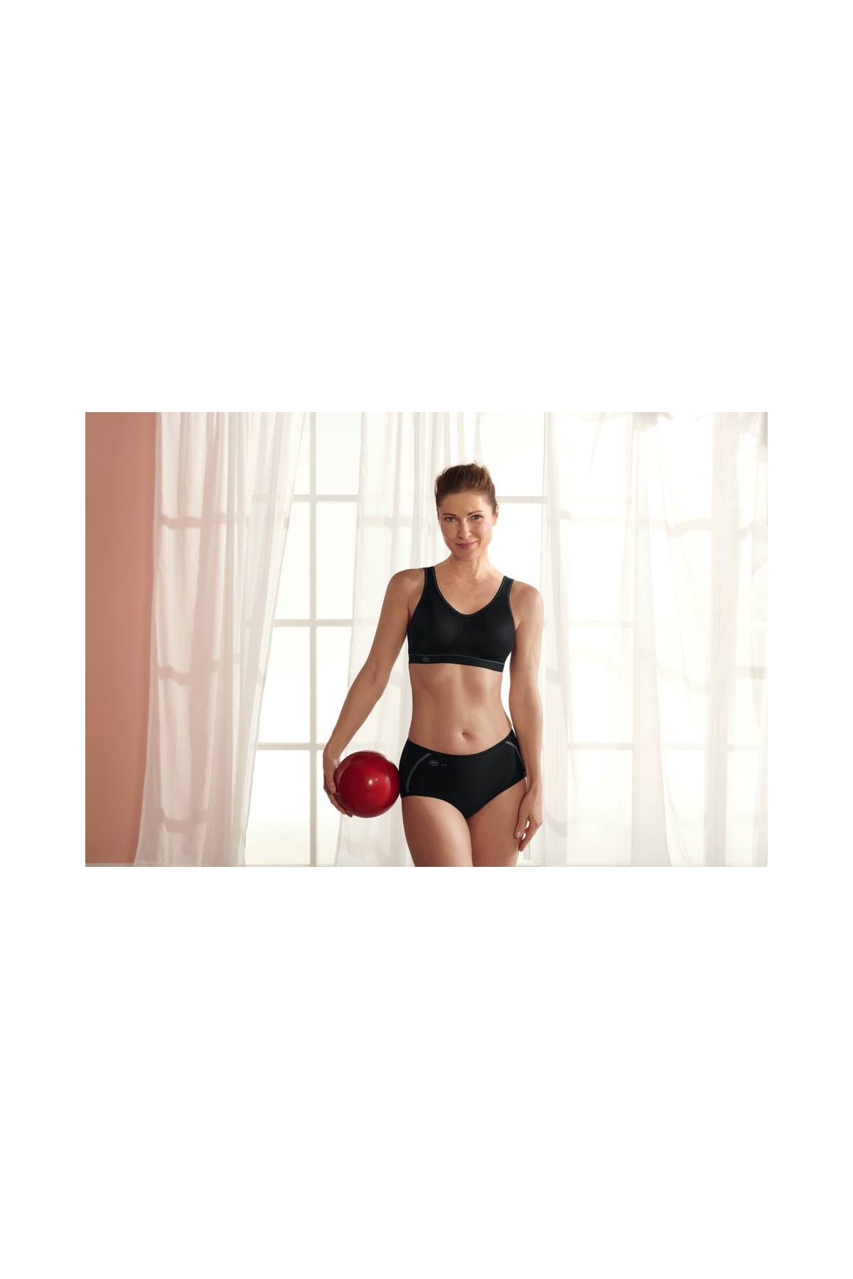 Moderní sportovní podprsenka se střední podporou.