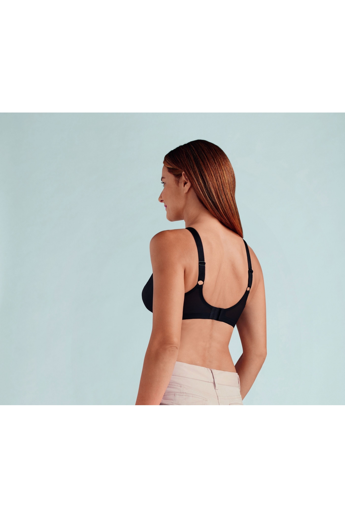Podprsenka Mila od firmy Anita má jemnou výztuž. Ramínka jsou zdobená krajkovou lemovkou. Kapsičky na vkládání epitéz jsou z jemného a velmi lehkého tylu. Zadní díl podprsenky je z pevného Power-tylu s bočním zesílením.