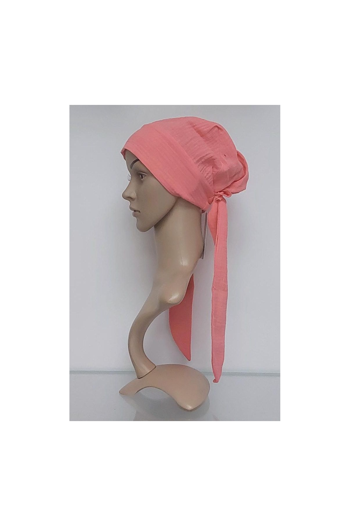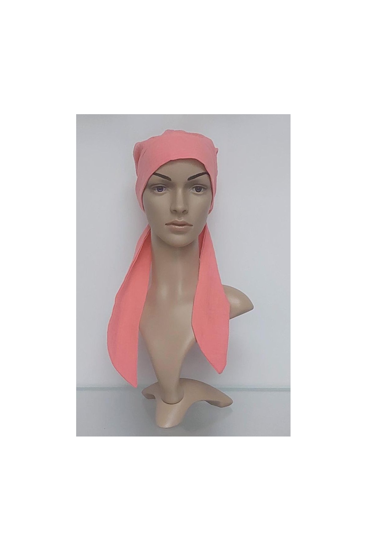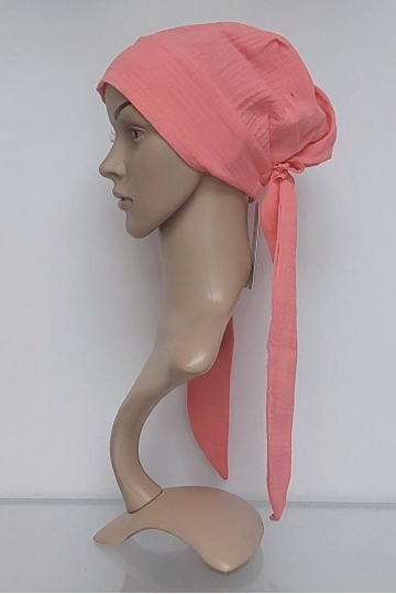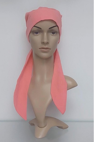 Nepodšitý šátek je vzadu sešitý do tvaru. Nerozevírá se. Vhodný pro pacienty po chemoterapii.