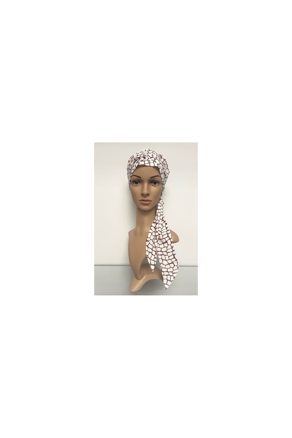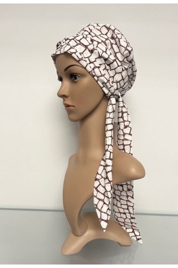 Šátek s dlouhým vázáním hnědo ružovo černá/vzor