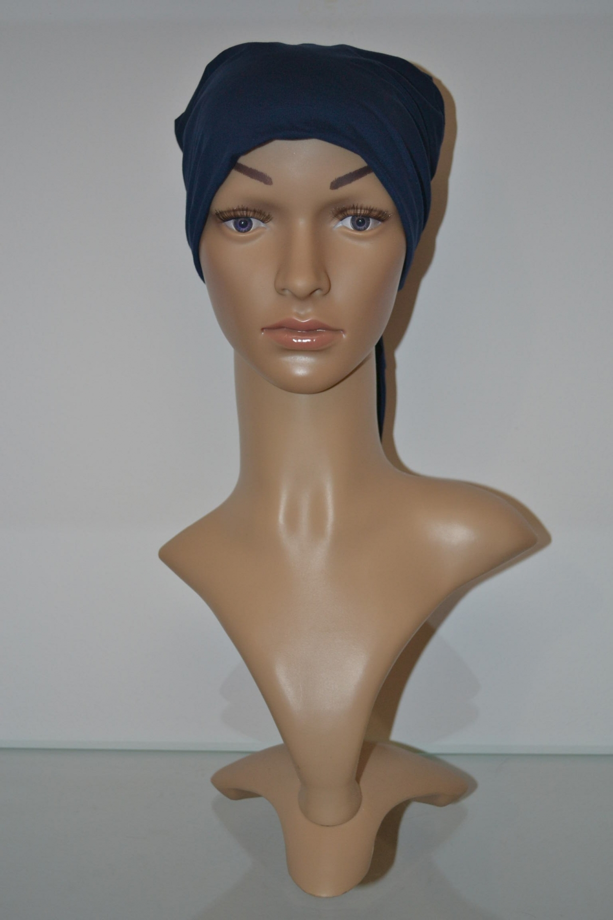 Nepodšitý šátek je vzadu sešitý do tvaru. Nerozevírá se. Vhodný pro pacienty po chemoterapii.