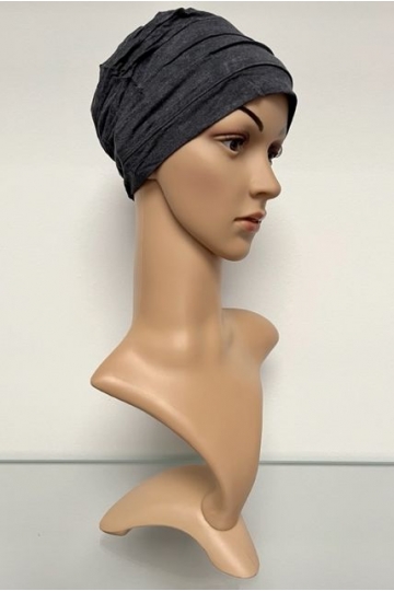 Elegantní turban tmavě šedé barvy ( fotografie turbanu neodpovídá skutečné barvě - turban je ve skutečnosti o stupeň světlejší ). Hodí se pro běžné denní nošení.