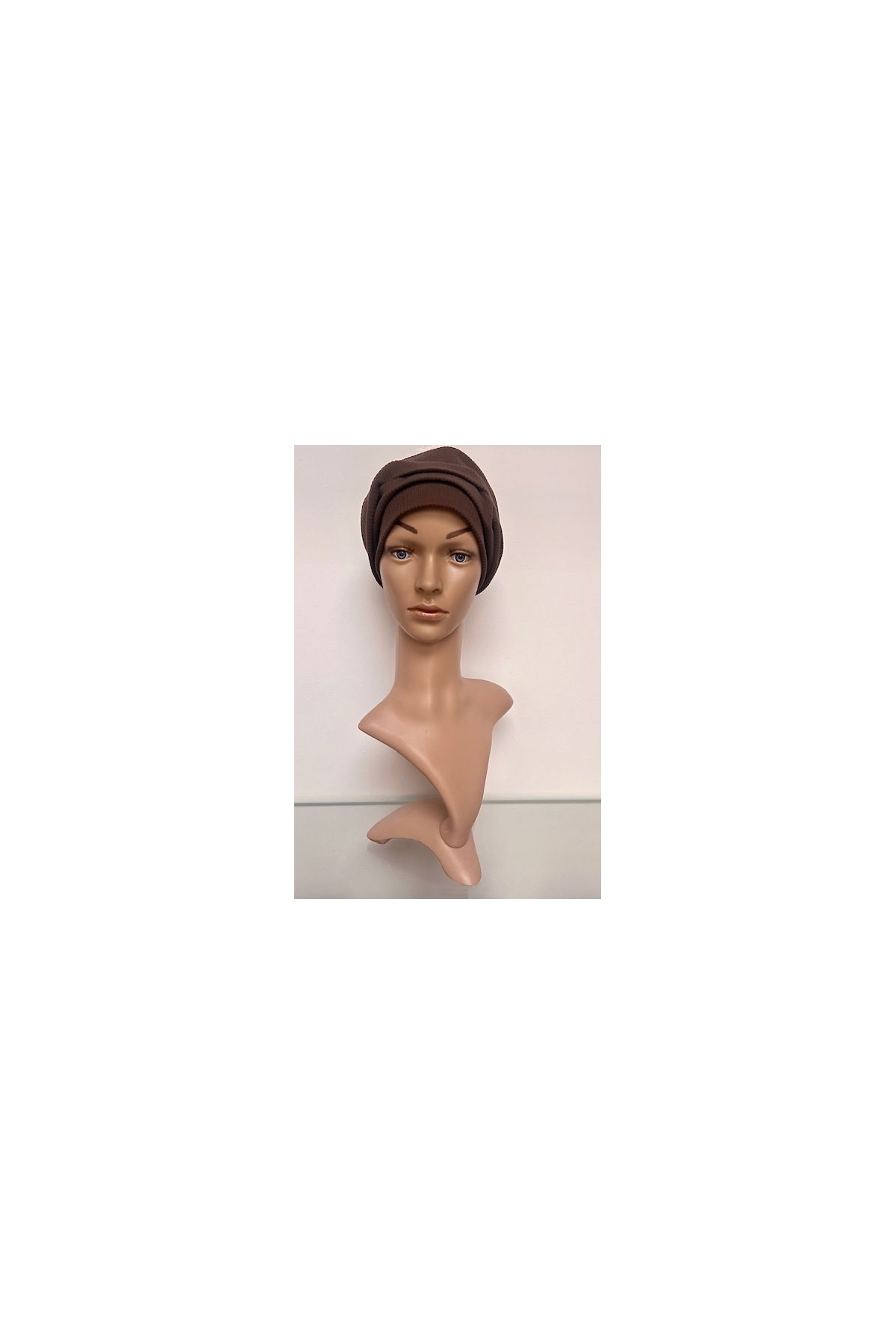 Elegantní turban hnědé barvy. Hodí se pro běžné denní nošení.