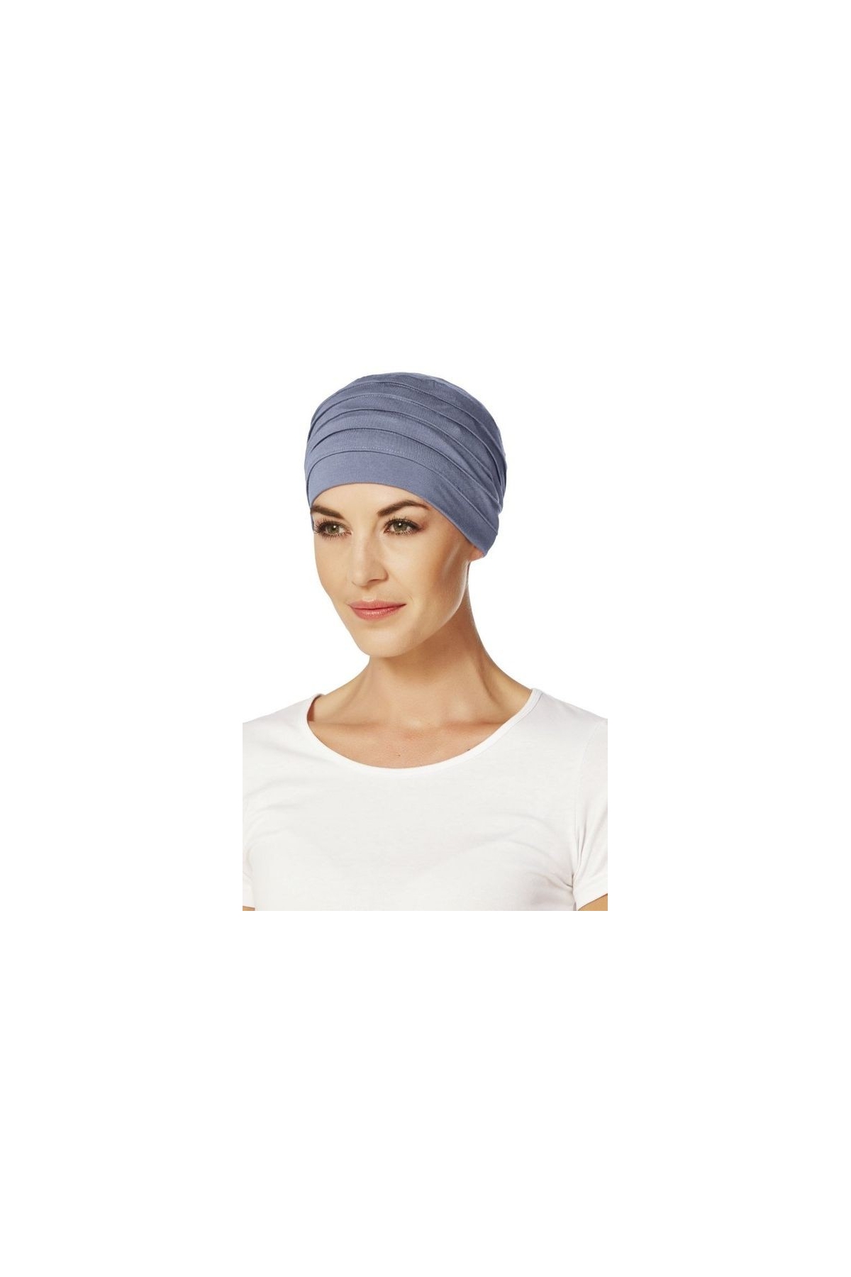 Elegantní turban s kšiltem. Hodí se pro běžné denní nošení.