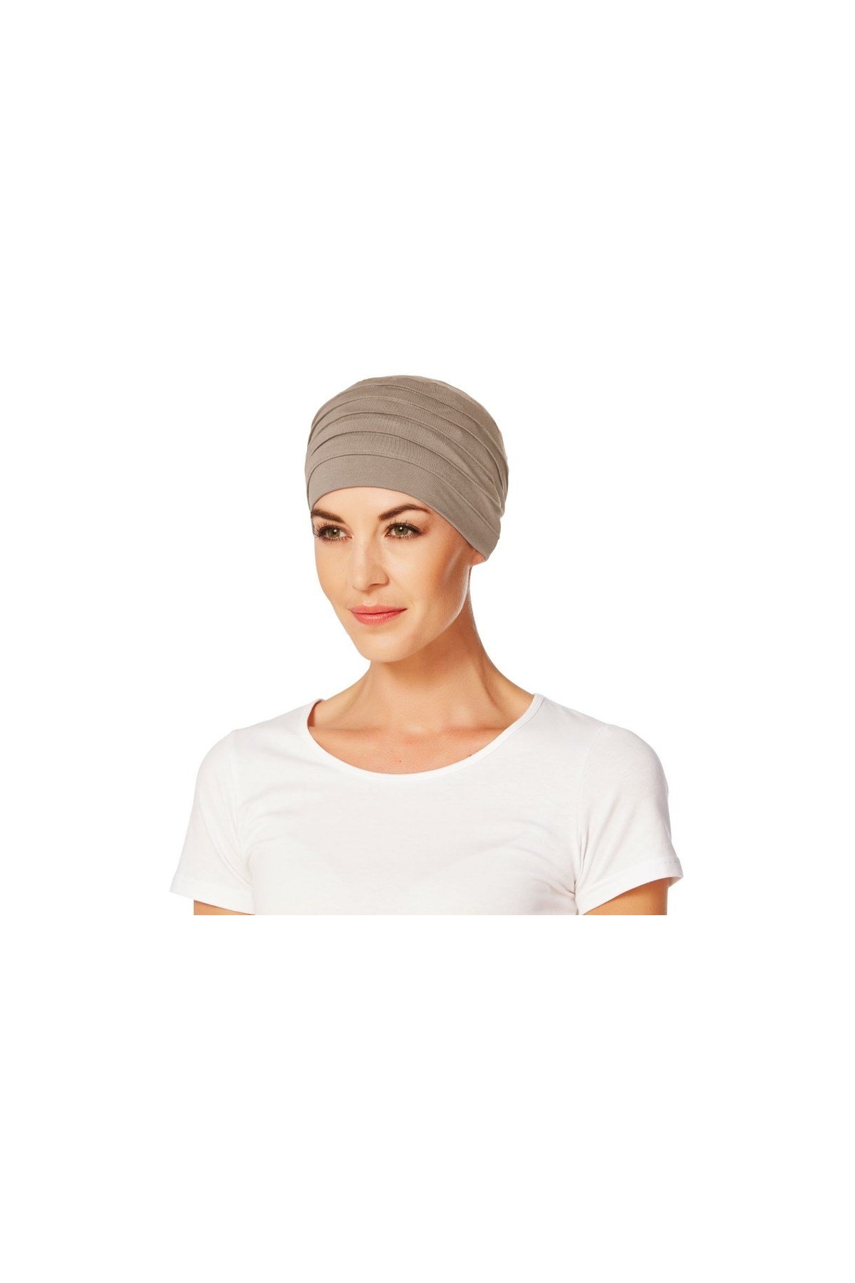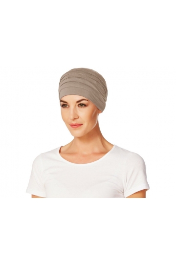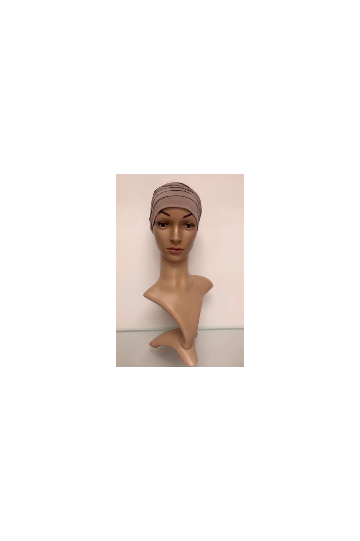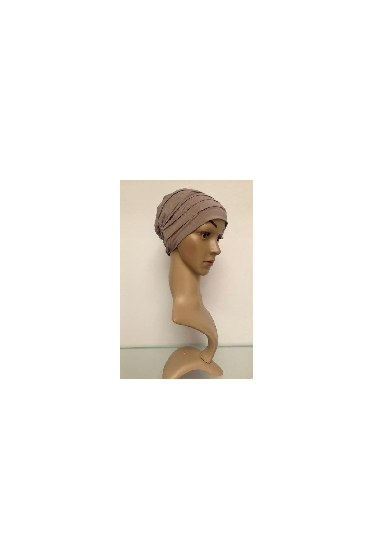 Elegantní turban hnědé barvy. Hodí se pro běžné denní nošení.